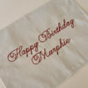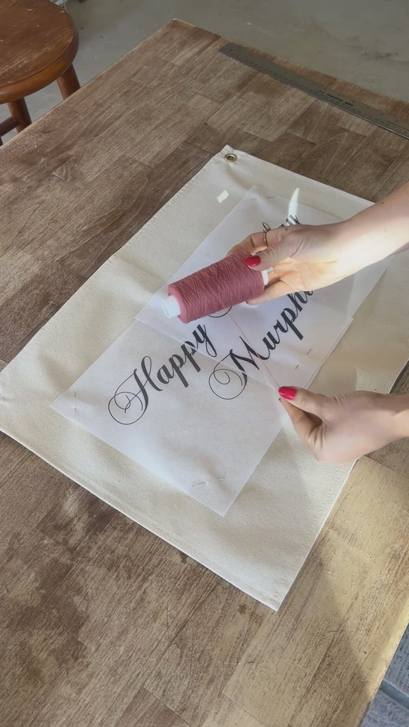 Add a little handmade happiness to your birthday celebration with a custom chainstitched banner. Banner measures and 20x15" with grommets on top for easy hanging. You choose the name, then let me stitch it for you using my vintage Singer chainstitch sewing machine
